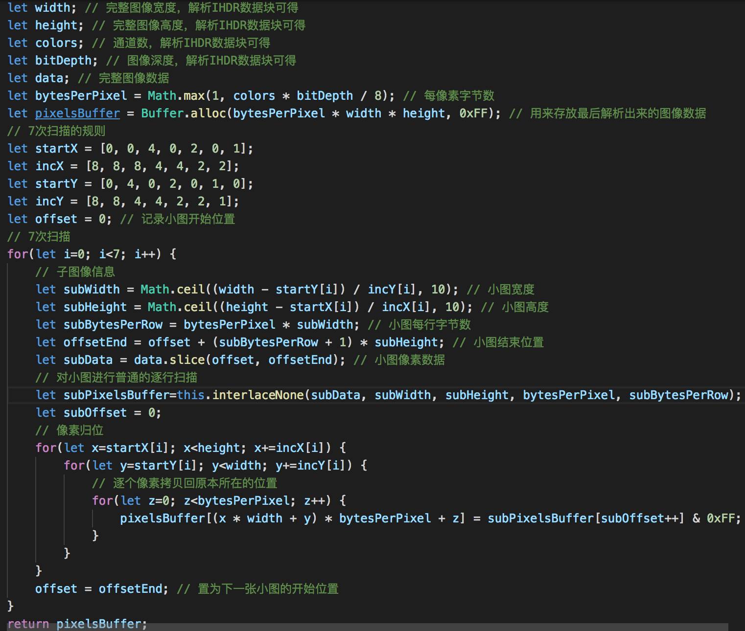 7次扫描,其实就回答了上面拆图的问题:要拆成7张小图。每张小图就包含了每次扫描时要归位的像素点。