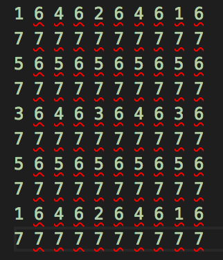 我们以一张10*10大小的png图片来举例,下面每个数字代表一个像素点,数字的值代表这个点在第几次扫描时被扫描到: