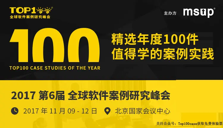 更多TOP100案例信息及日程请前往官网查阅。4天时间集中分享2017年最值得学习的100个研发案例实践。本平台共送出10张开幕式单天免费体验票,数量有限,先到先得。