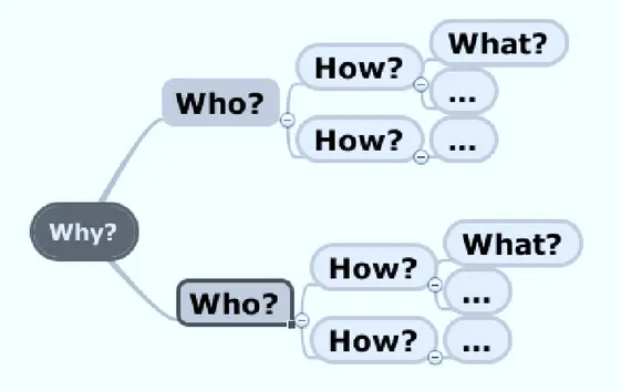 影响地图(图4所示)指出:产品是为人服务的,必须通过影响人的行为才能实现目标。这也是“影响地图”名称的由来。为完成从目标到功能的映射,影响地图要回答两个问题:
