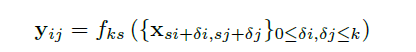卷积网是以平移不变形作为基础的。其基本组成部分(卷积,池化和激励函数)作用在局部输入域,只依赖相对空间坐标。在特定层记X_ij为在坐标(i,j)的数据向量,在following layer有Y_ij,Y_ij的计算公式如下: