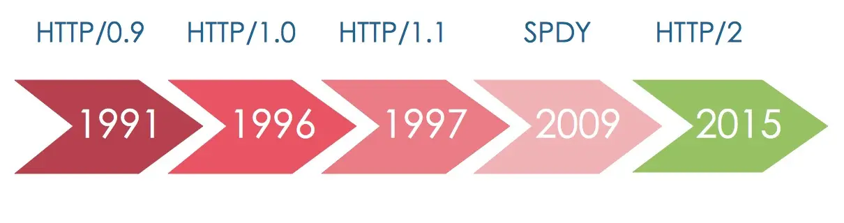 自从1991年Tim Berners-Lee提出HTTP协议的设想到现在已经20多年过去了,在这20多年中Web的发展也是日新月异。为了满足不同时代Web的需求,HTTP协议的更新迭代经历了HTTP0.9、HTTP/1.0、HTTP/1.1、SPDY、HTTP/2几个版本。接下来就这几个版本的HTTP进行简要介绍。
