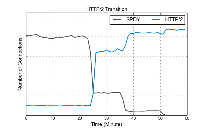 2009年,Google提出了一项实验性的协议SPDY(读音同speedy),旨在开发者不修改当前网站实现的前提下,提高页面加载速度。SPDY提出后,Chrome、Firefox、Opera等主流浏览器先后给出了实现,很多大型网站(如Google、Twitter、Facebook等)分别提供了其对SPDY会话的实现。2012年,HTTP-WG提出了在SPDY基础上构建HTTP/2的草案,2013年给出了第一个对HTTP/2的实现,自此HTTP/2、SPDY并行发展,在客户端和服务器上进行了广泛可靠的测试。2015年,Google 宣布放弃对SPDY的继续支持,标志着HTTP/2正式登上历史舞台。
