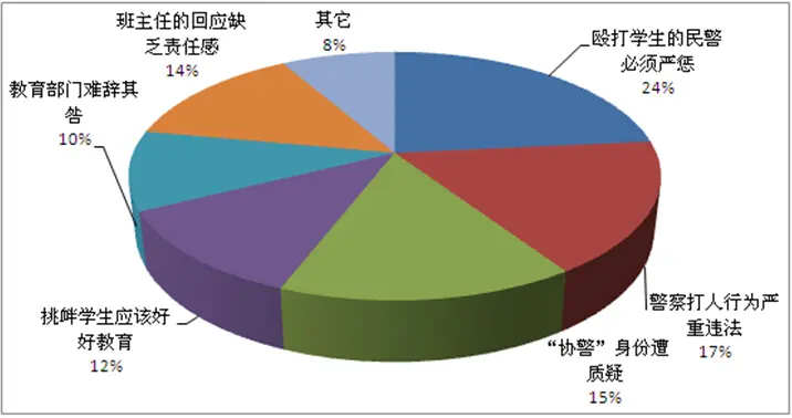 在此事件中,校方也扮演着极为重要的角色。无论是被打学生的班主任,还是学校层面,面对此事件的回应都欠妥当。学校层面的“删除照片”等指示极易招致网友和学生的反感,在此反感情绪下,只会加剧学生传播事件的冲动。班主任口中该学生“学习不好、爱起哄”等负面印象被理解成“该学生活该被打”,在教师整体形象不佳的背景下,班主任的这些言论是责任感缺失的一种体现。校方和班主任的不恰当行为让事件处置难度和舆论引导难度明显增加,实在不该。“ --- 人民网舆情监测室主任舆情分析师 朱明刚