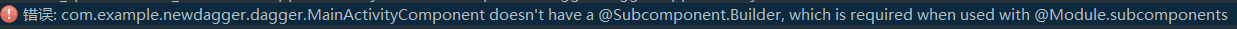 注意这样使用的时候子 Component 中必须存在被 @Subcomponent.Builder 标注的类或接口,否则会报如下的错: