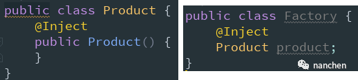 我们给 Factory 的构造参数也添加了 @Inject 标注,但是它的构造参数是带参数的;那这里就会有一个问题:我们上面说了必须使用 Component 的 inject() 之后才完成注入,我们并没有给 Factory 进行 inject() 的操作啊,它为什么能去实例化 Product 呢?
