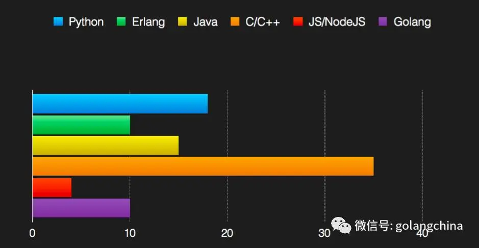 图 8 是阿里内部使用语言的开发人员的人数统计图,从图中可以看出,golang的使用人数其实是相对较少的,但是其增长速度却是最快的。那么是什么原因导致gopher数量的急剧增加,大部分人都知道Java可以比作为一个静态艺人,对于很多Java开发人员来说,历史遗留包袱比较重,培养一个能在业务系统上做支持的Java人员很难,但是若只是Spring开发人员,也未必是符合我们所需。