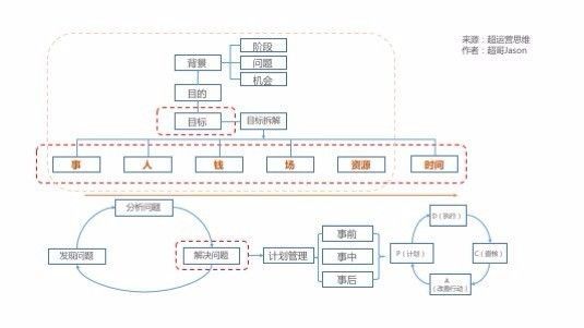 事、人、钱、场、资源、时间这些维度里面,最关键的是“事”,也就是解决问题的策略和方法,对于“事”的思考就需要遵循科学的思维方法。在整个思考过程中就需要学会自上而下的系统性逐级进行思维拆解,而非散点性的进行思考。只有这样才能够考虑地更加全面。
