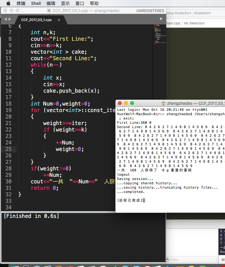 时间我没办法。只能是用sublime的gcc自带的计时,算出来不到一秒。感动~ 但是每次超过500感觉就会直接爆炸,程序直接原地不动了。最后exit 9 ,估计是内存不够?不至于哇!不管了不管了!