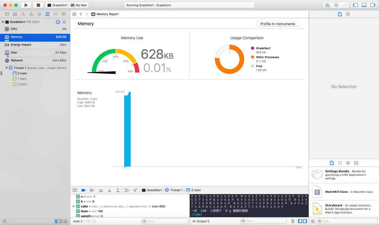 搞了半天输入有点偏差,所以后来自己动手写了120个混乱数字,然后直接复制进入算作输入,120个数字,占用了608k,至于用时,我个人感觉还挺快的。