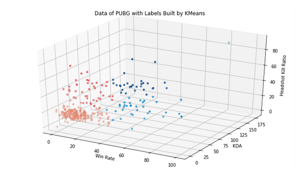 考虑到可视化的直观与方便,不妨从这37个数据里挑出3个作为特征参数。最后我选择了 Win Rate,KDA,Headshot Kill Ratio,原因是: