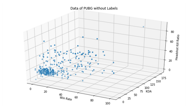 ax1.set_title('Data of PUBG without Labels')
