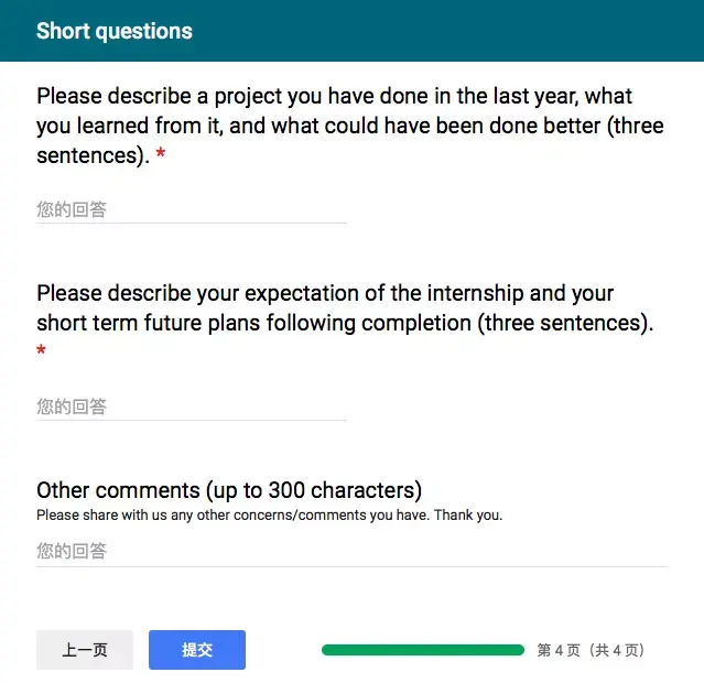 在提交之前,吴恩达要求本营长用三句话描述一下营长去年所做的项目、从中学到的东西以及值得改进的地方,他同时还要本营长再用三句话来描述一下营长对于实习期间的期望以及实习期满后的打算。