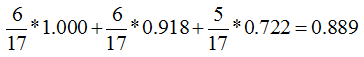 所以A的权值为6/(6+6+5), B的权值为6/(6+6+5), C的为5/(6+6+5)