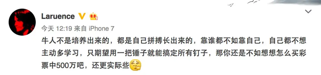 最后,送给大家 PHP核心开发者『鸟哥』惠新宸 在近日微博上更新的一句话: