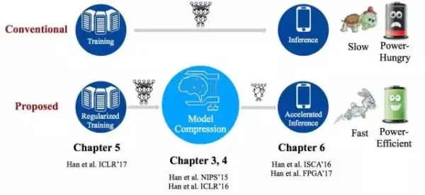 韩松,2017 年斯坦福大学电子工程系博士毕业,师从 NVIDIA 首席科学家 Bill Dally 教授。他的研究也广泛涉足深度学习和计算机体系结构,他提出的 Deep Compression 模型压缩技术曾获得 ICLR'16 最佳论文,ESE 稀疏神经网络推理引擎获得 FPGA'17 最佳论文,对业界影响深远。他的研究成果在 NVIDIA、Google、Facebook 得到广泛应用,博士期间创立了深鉴科技,2018 年将任职 MIT 助理教授。本文对韩松博士的毕业论文做了介绍。