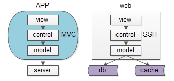 同一个层次的内部 ,例如端上的APP,以及web-server,也都有进行MVC分层: