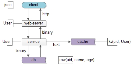 service与db/cache之间,二进制协议/文本协议是数据传输的载体