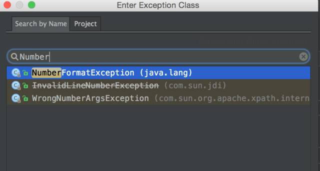 点击左上角的 ➕ ,会出现一个选择框;选择Exception Breakpoint;然后会出现一个对话框,选择你感兴趣的异常: