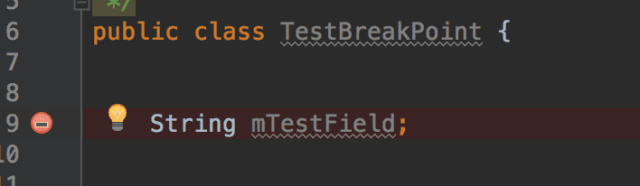 下断点的方式和方法断点类似,也有两种;第一种是直接在某个字段的声明处下断点,这时候断点图标会改变,如下图: