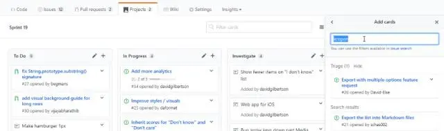 你可以点击右上角的 Add Cards,找到要添加的内容。 此时特殊搜索语法就派上用场了,例如,输入 is:pr is :open 便可以将任何公开的 pull 请求拖动到项目板上,或者输入 label:bug 即可粉碎一些 bug。