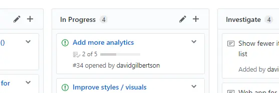 缺点:在过去三周里我不再使用 Jira,而是一直在 GitHub 上做所有的任务,这是一个我很喜欢的有点看板风格的小项目。