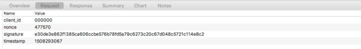 NSString *raw = @"client_id=000000&client_secret_key=853k3a3qfq6g9qutefaicvn7jsaww09m&nonce=477570×tamp=1508293067";