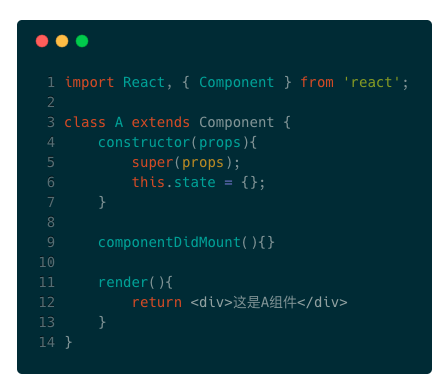 声明A后,我们可以在其内部自定义方法,也可以使用生命周期的方法,如ComponentDidMount等等,这些和我们在写"类"的时候是完全一样的。唯一不同的是组件类必须拥有render方法输出类似<div>这是A组件</div>的结构并挂载到真实DOM上,才能触发组件的生命周期并成为DOM树的一部分。首先我们观察ES6的"类"是如何初始化一个react组件的。