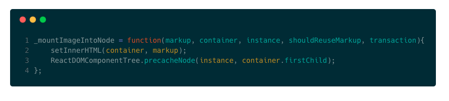 batchedMountComponentIntoNode以事务的形式调用mountComponentIntoNode(事务将专门拿出一篇文章来解析),该方法返回组件对应的HTML,记为变量markup。而mountComponentIntoNode最终调用的是_mountImageIntoNode,看下源码: