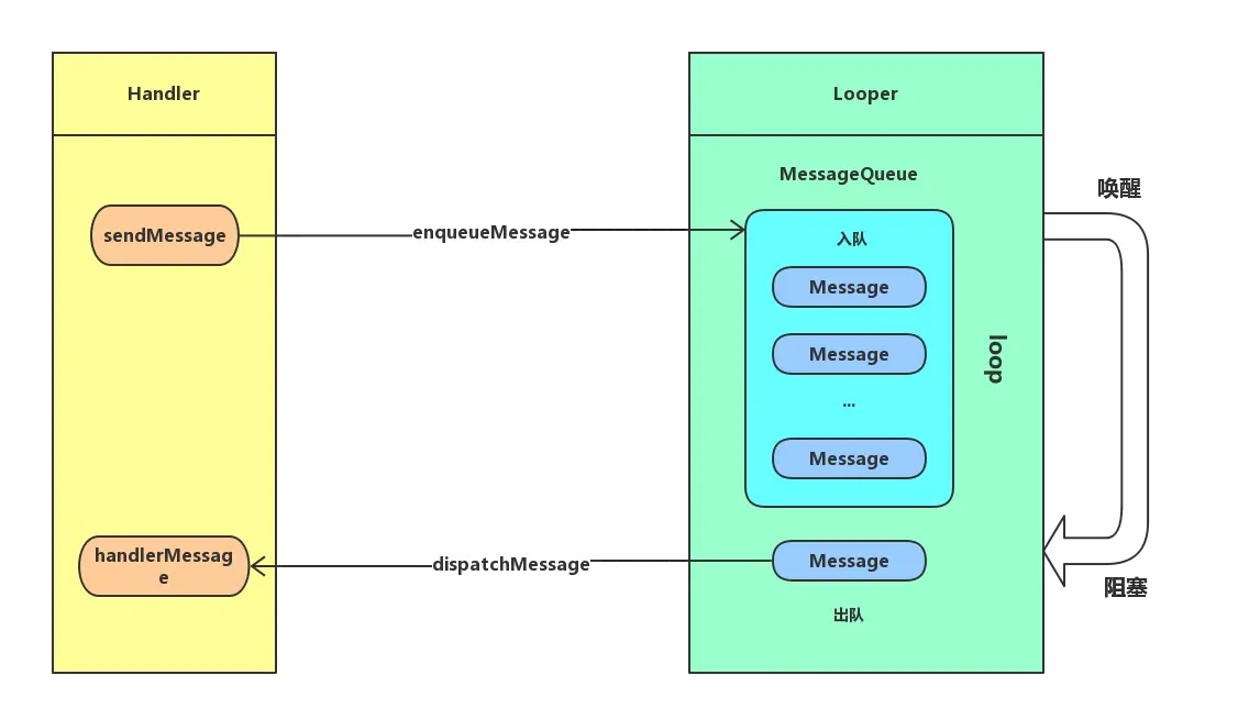 本文从一开始构建循环体Looper、从MessageQueue取出消息到Handler消费消费的过程,然后再对Handler发送消息,紧接着消息入队列这一过程的分析。