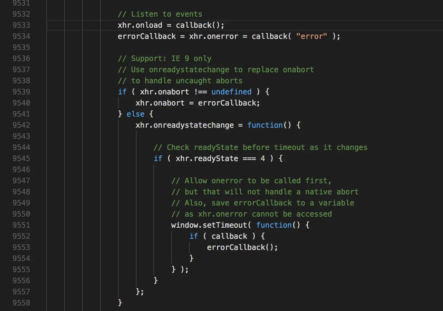 而我自己实现的和 nej 的实现均是将success回调绑定在了 onreadystatechange 事件上,唯一的区别就在于此