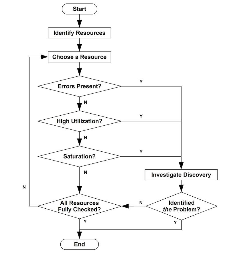 幸运的是,最常见的问题往往是简单的(例如,CPU饱和度,内存容量饱和度,网络接口利用率,磁盘利用率),这类问题往往第一时间就能被检查出来。
