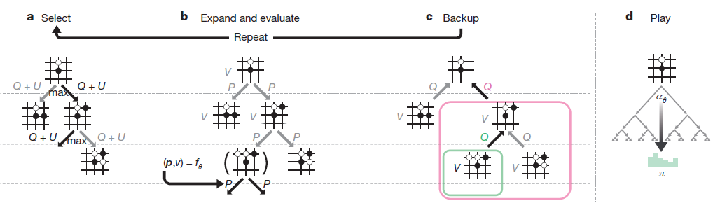 在网络结构的设计上,新的算法与之前的AlphaGo有两个大的区别。首先,与之前将走子策略(policy)网络和胜率值(value)网络分开训练不同,新的网络结构可以同时输出该步的走子策略(policy)和当前情形下的胜率值(value)。实际上 policy与value网络相当于共用了之前大部分的特征提取层,输出阶段的最后几层结构仍然是相互独立的。训练的损失函数也同时包含了policy和value两部分。这样的显然能够节省训练时间,更重要的是混合的policy与value网络也许能适应更多种不同情况。