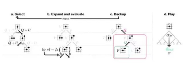 c,行动价值Q被更新以追踪当前行动下的子树的所有评估V的平均值。
