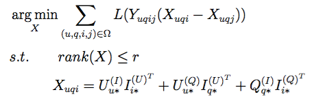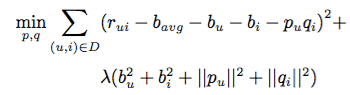 分别表示商品的整体评分平均值,所有与i商品相关的评分平均值,用户u对所有商品的评分平均值。相应的优化目标为: