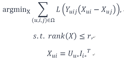 此外,相较于评分而言,用户常常更喜欢使用倾向性的选择,即观众更喜欢描述电影i比j好看,小说x比y羞涩等等。所以在优化函数设计上,将倾向性作为优化方向更加合适。比如[3]: