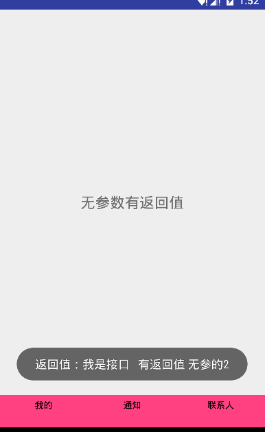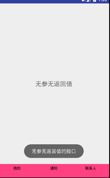 Toast.makeText(MainActivity.this,"无参无返回值的接口",Toast.LENGTH_SHORT).show();