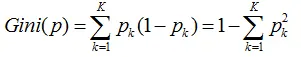 决策树的目的最终还是寻找到区分样本的纯度的量化标准。在CART决策树中,采用的是基尼指数来作为其衡量标准。基尼系数直观的理解是,从集合中随机抽取两个样本,如果样本集合越纯,取到不同样本的概率越小。这个概率反应的就是基尼系数。