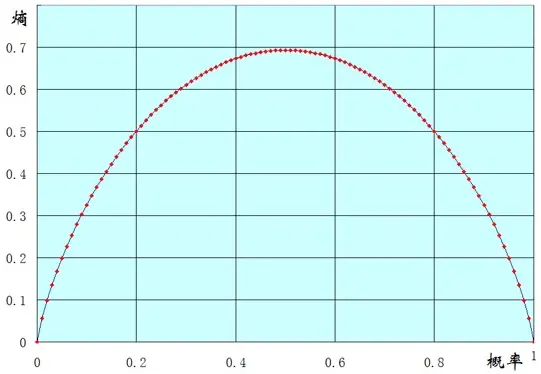 以一个两点分布样本X(x=0或1)的熵的函数图像来说明吧,横坐标表示样本值为1的概率,纵坐标表示熵。