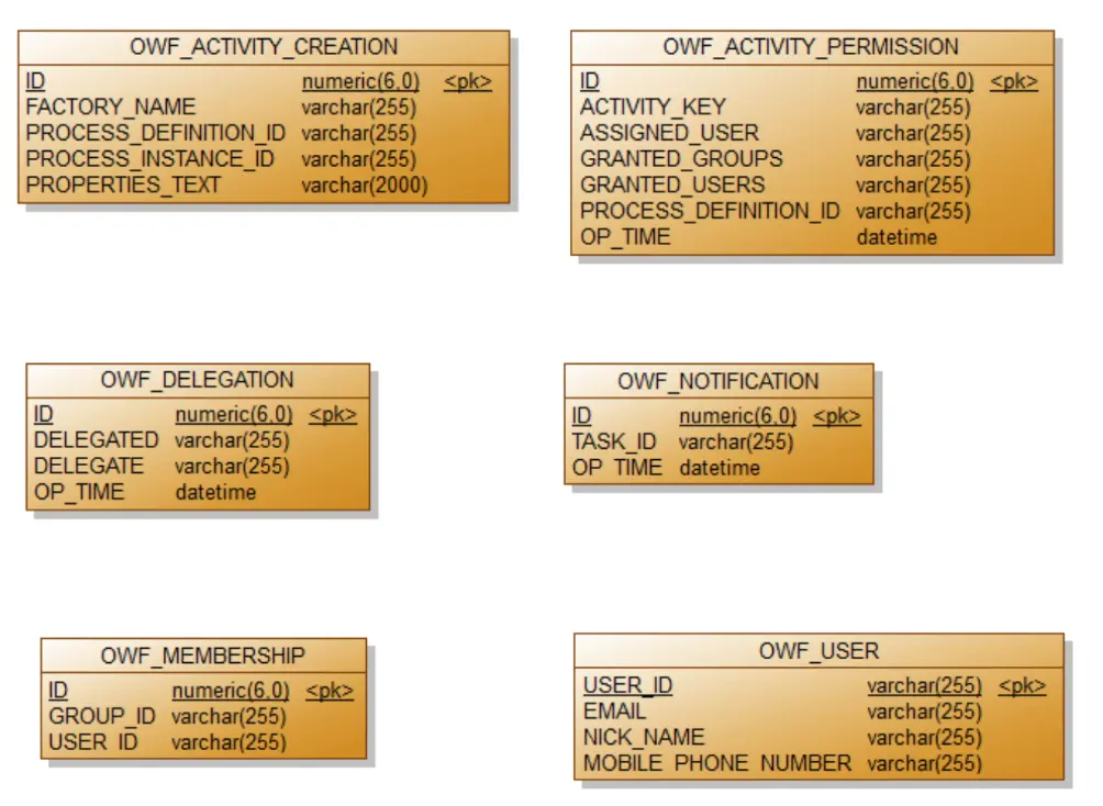 在标准的工作流定义中,每个节点可以指定其候选人和候选用户组,但是比较惨的是,Activiti绑架了用户信息表的设计!这个是真正致命的,因为几乎每个业务系统都会属于自己的用户信息结构(包括User/Group/Membership),但不一定它存储在Activiti喜欢的那个库中,表的结构也不一定一样,有的时候,某些信息(如:动态的Group)压根儿就不采用表来存储。OpenWebFlow剥离了用户信息表的统一管理,客户程序可以忘掉Activiti的用户表、群组表、成员关系表,详见自定义用户成员关系管理;