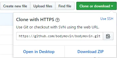 2.1 到Bodymovin的GitHub首页(链接:bodymovin/bodymovin)克隆项目到本地,或者下载.zip包。
