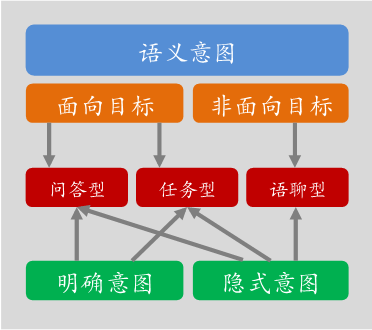 1、意图识别层:识别语言的真实意图,将意图进行分类并进行意图属性抽取。意图决定了后续的领域识别流程,因此意图层是一个结合上下文数据模型与领域数据模型不断对意图进行明确和推理的过程;