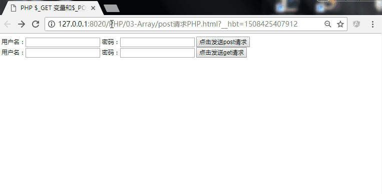 接下来我们使用PHP 中的$_GET 变量和$_POST变量实现简单的前后台数据传输交互功能: