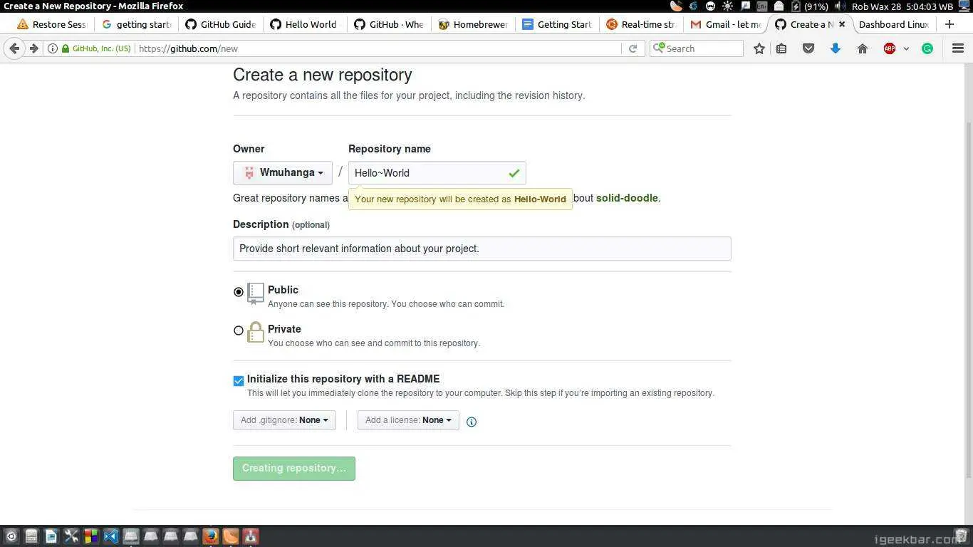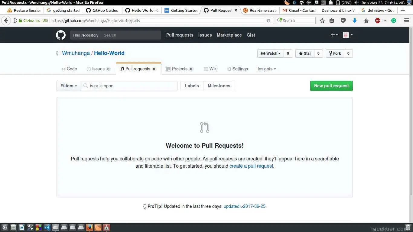 - 在这个例子中,点击仓库名称 “Hello-World” 跳转到你的新仓库。