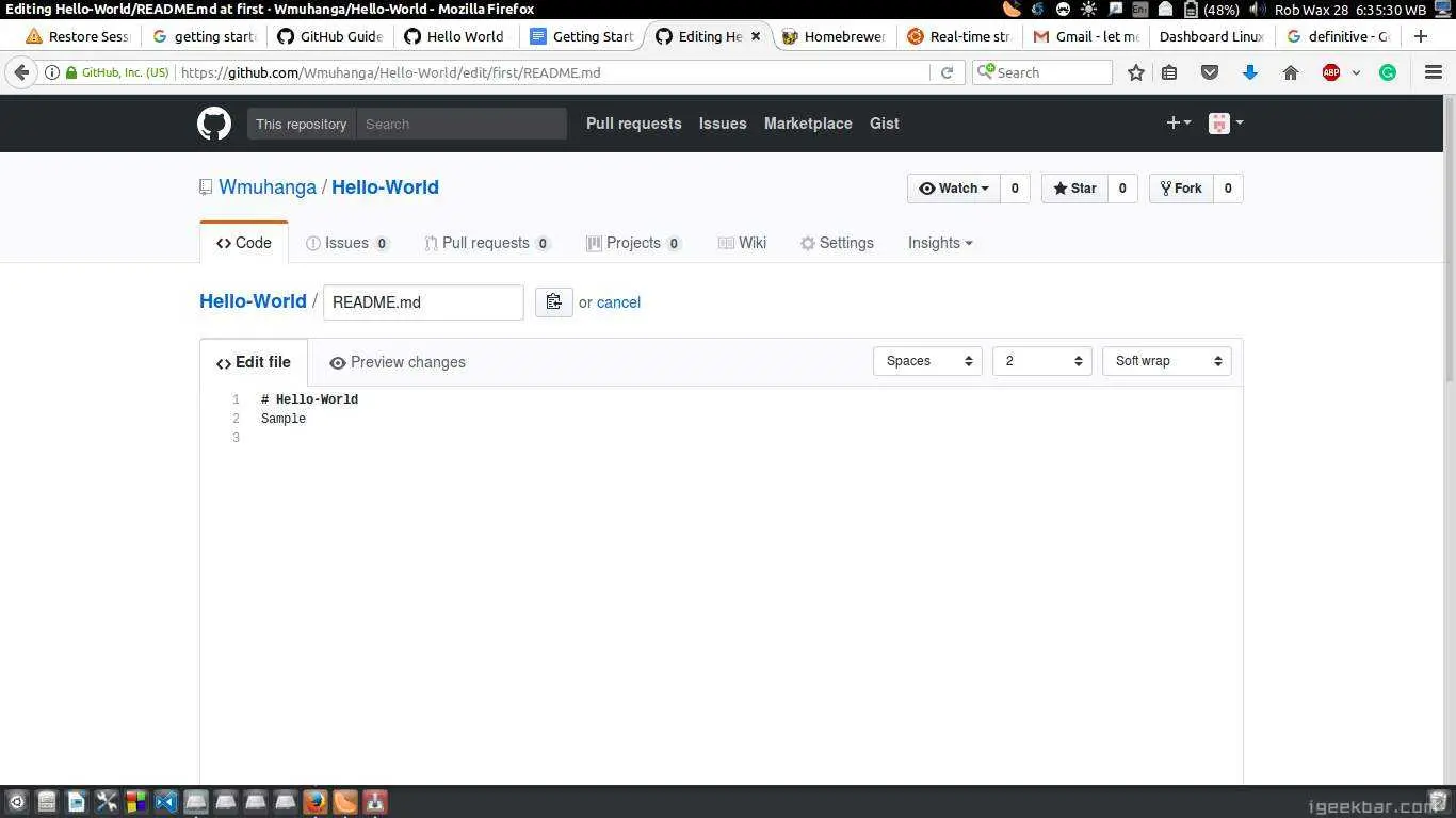 - 输入分支名称,在这个例子中我们输入 “readme-edits“。