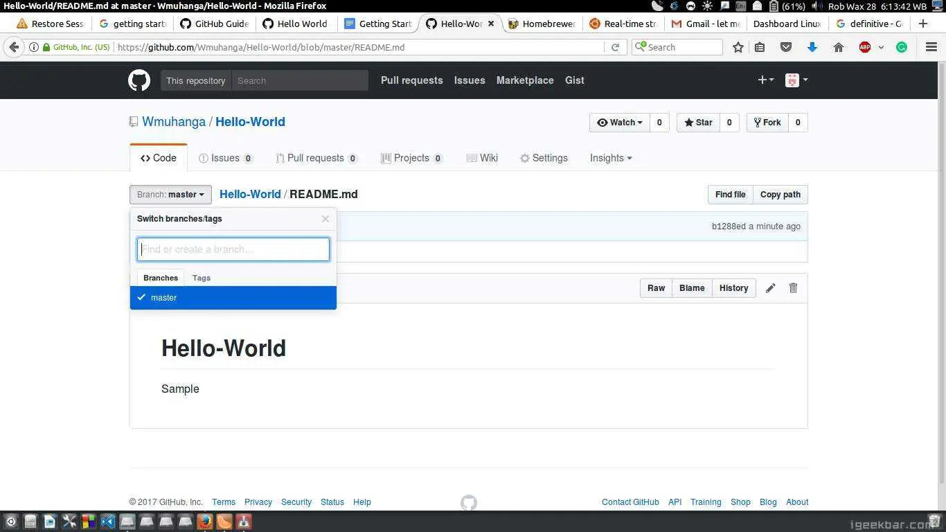 - 点击顶部的 “Branch:Master” 按钮,会看到一个下拉菜单,菜单里有填写分支名称的空白字段。