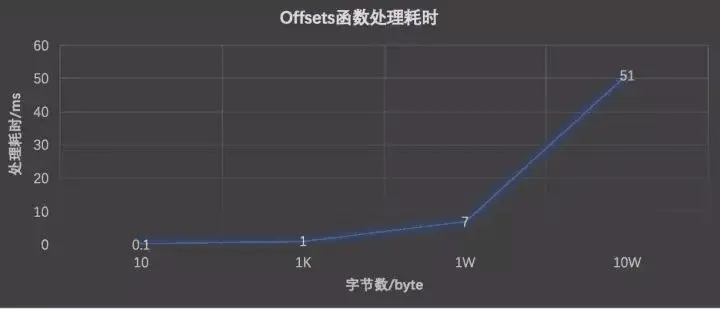 下图是Offsets函数处理命中Doc字节数和耗时的关系: