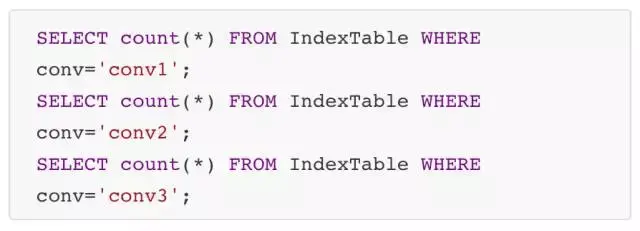 得到会话conv1,conv2,conv3,然后执行以下SQL,可以分别得到三个会话的命中个数