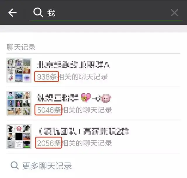 图中的红色圈内的数字表示,此会话中,包含关键字“我”的聊天记录的个数,而会话的排序规则就是会话的活跃时间。