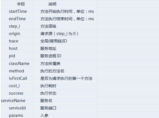 这套日志格式主要是参考Google 的Dapper论文,关键是trace_id(全局唯一的方法调用ID,通常特定规则生成的UUID)和span_id(方法调用的层级ID),通过这两个ID串联起整个RPC调用链。在日志中记录RPC相关的所有方法调用信息,包括服务名;方法开始时间和结束时间,用以计算方法耗时;方便定位服务进程的host、pid和服务端口;定位问题时需要的入参。没有记录出参的主要原因是出参过大,并且通过入参中的业务字段,能定位是在哪一级出的问题,现阶段够用。